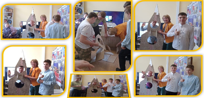 После умственной разминки «Космические загадки», довольно быстро ребята из пазлов собрали звездолет, на котором экипаж должен отправиться в звездные дали. Наша команда готова к полету! И по традиции, «давайте-ка, ребята, споёмте перед стартом». Все с удовольствием приняли участие в караоке с нарезкой песен о космосе, о родной Земле.