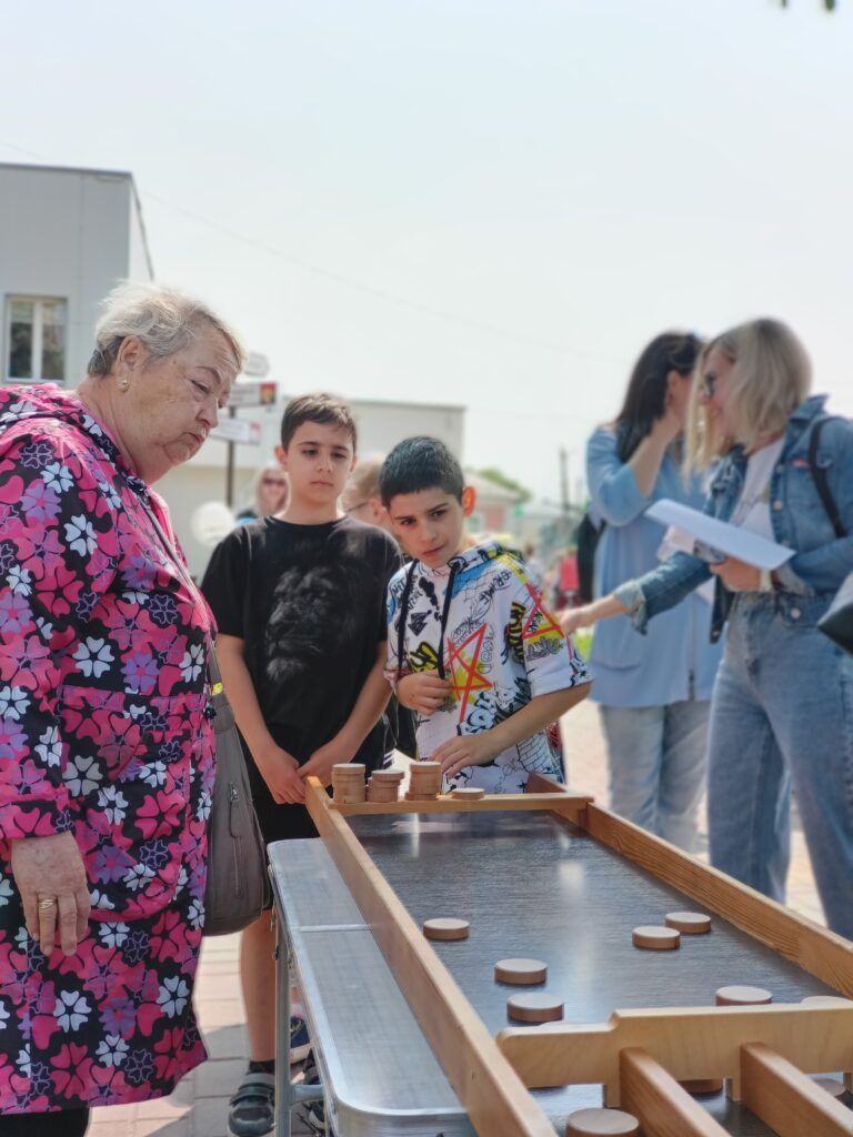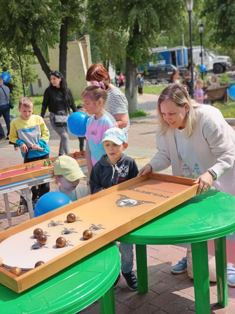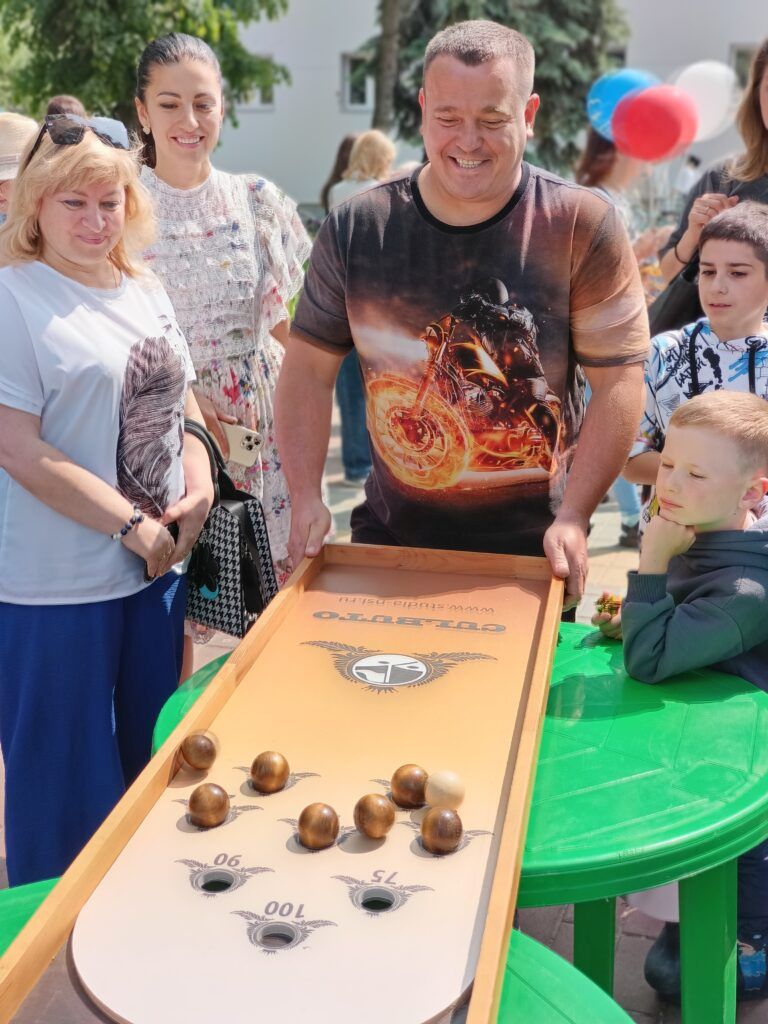 Многие ребята знают наши игры не понаслышке, — в Лицее и в Автомобильно-дорожном колледже мы проводили Турниры по НСИ. Да и на городских праздничных мероприятиях мы проводим мастер-классы по настольным спортивным играм. Поэтому, с самого начала праздника к нашему спортивному городку был повышенный интерес не только у школьников, но и у их родителей и педагогов. Заглянул к нам и Глава г.о. Бронницы Лысенков Д.А., поблагодарил за активную работу организации по реабилитации детей с ОВЗ и детей инвалидов.