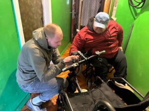 И буквально на этой неделе помощь понадобилась нашему инвалиду-колясочнику Манкуш О. Благодаря денежным переводам добрых людей, мы смогли купить электрический привод для инвалидной коляски Олега. Но, так как его коляска не стандартных размеров, необходимо было приспособить электропривод именно к коляске Олега и это мог сделать только специалист. Такой специалист Егор Рыннов работает на заводе «Инновент», куда мы и обратились за помощью. Теперь Олегу не страшны ни ветер, ни неровности на дорогах.