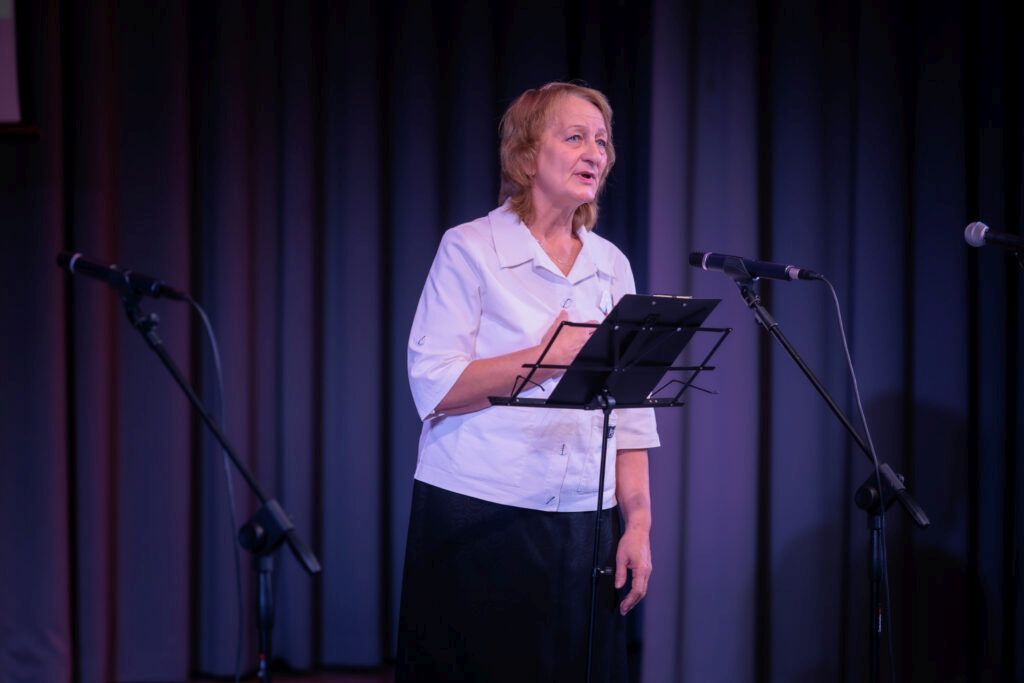 В репертуаре нашего выступления одно произведение должно звучать «а капелла». И тут равных нашей Г.И. Погорелой нет! Сколько песен Галина Ивановна исполняла на наших праздничных мероприятиях! Но, так случилось, накануне Галина Ивановна упала, сильно ушиблась и понятно, поехать на Фестиваль не смогла. Что делать? Как в слогане нашей юности – «Партия сказала, комсомол ответил – есть!» — председатель организации за одну ночь почти выучила песню «Старый костер» и исполнила на Фестивале ее а капелла. Спасибо огромное всем зрителям, после исполнения песни в звенящей тишине, гром аплодисментов в зале! Нам, самодеятельным артистам, очень важно знать, что исполнение песни понравилось! Спасибо!