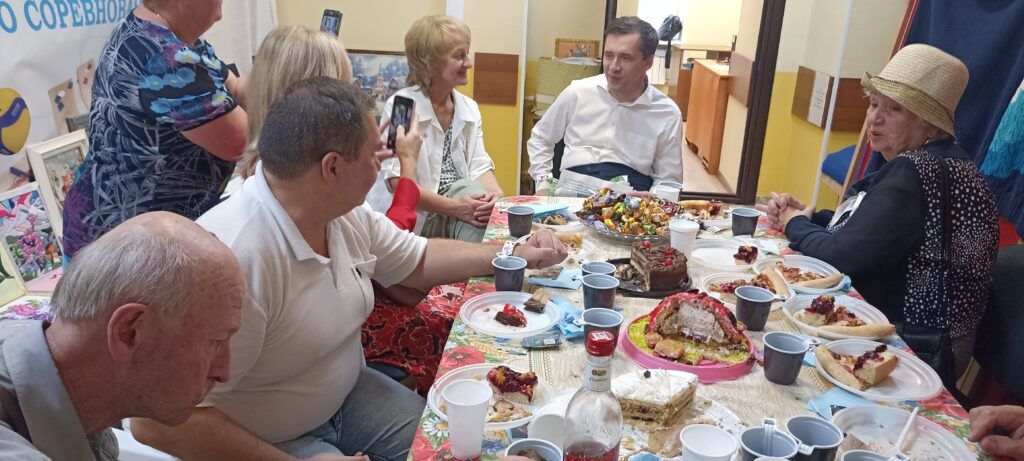 Праздничное мероприятие закончилось чаепитием с очень вкусным пирогом, разнообразными тортами и пиццей.