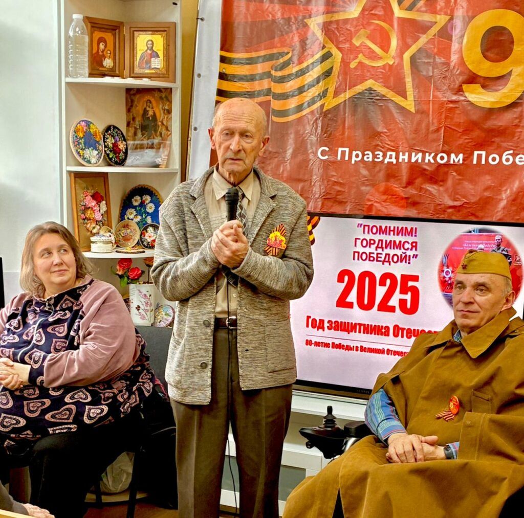 Почетный гость нашего мероприятия, заместитель председателя Совета ветеранов города Кисленко Б.Н., выступивший с приветственным словом, поблагодарил наше общество за активную работу по патриотическому воспитанию населения. 80 лет, как закончилась война, но эхо этой войны мы слышим до сих пор. Над нашей Отчизной вновь сгущаются тучи зла, ненависти и коварства врагов. Неонацисты, вскормленные Западом, грозят уничтожить русский мир. Так случилось, что Россия вновь обнажила свой меч справедливости и призвала своих сынов и дочерей встать на защиту свободы и независимости государства. Сегодняшние поколения наших земляков, как и прежде, достойно отстаивают рубежи страны. Они сегодня там, на передовой, где решается судьба каждого из нас. Все мы, оставшиеся в тылу, как и наши предки в час испытаний, едины в своих чувствах. Мы с ними и никакие распри не могут разорвать эту крепкую духовную связь.
