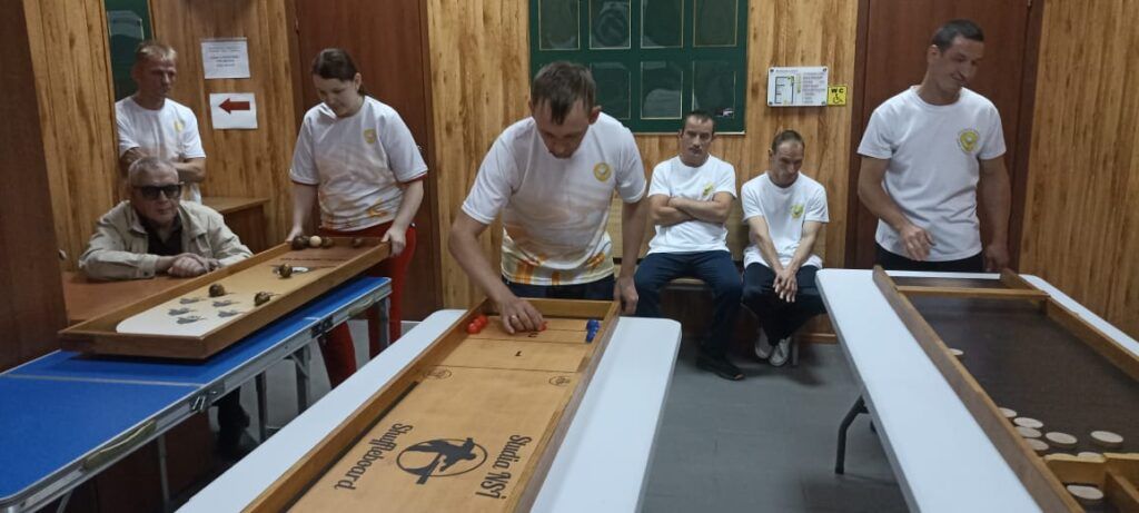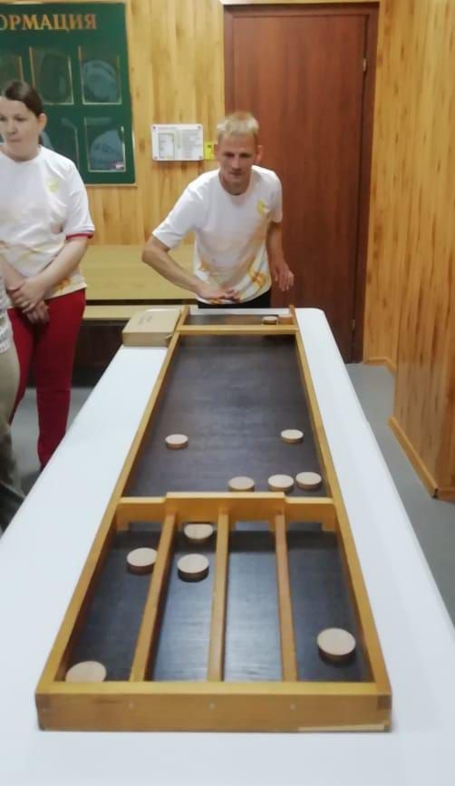 Третий год Бронницкая организация инвалидов ВОИ принимает участие во Всероссийском спортивном марафоне «Сила России», направленном на популяризацию массового спорта и физкультуры, в рамках которого организовывает и проводит Турниры по НСИ (настольные спортивные игры). С каждым годом желающих поучаствовать в Турнире становится больше! И это радует! 13 августа мы организовали и провели Турнир по НСИ (настольные спортивные игры — джакколло, кульбитто, шаффлборд) для команды подопечных ГБСУСО МО «Добрый дом «Раменский». Председатель БГО Терешко Любовь рассказала историю возникновения настольных спортивных игр, обратив внимание присутствующих на то, что человек практически с любого рода отклонениями может успешно играть, что способствует физической и социальной реабилитации.